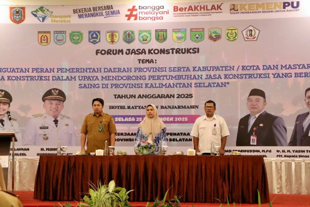 BANJARMASIN, KTV – Pemerintah Provinsi Kalimantan Selatan menggelar Forum Jasa Konstruksi Tahun Anggaran 2025 dengan tema “Penguatan Peran Pemerintahan Daerah