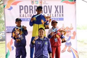 BANJARMASIN, KTV – Cabang olahraga renang perairan terbuka menjadi pembuka kontribusi medali bagi kontingen Kota