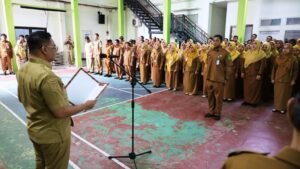TENGGARONG, KTV – Bupati Kutai Kartanegara dr Aulia Rahman Basri M.Kes memimpin Apel Pagi Aparatur Sipil