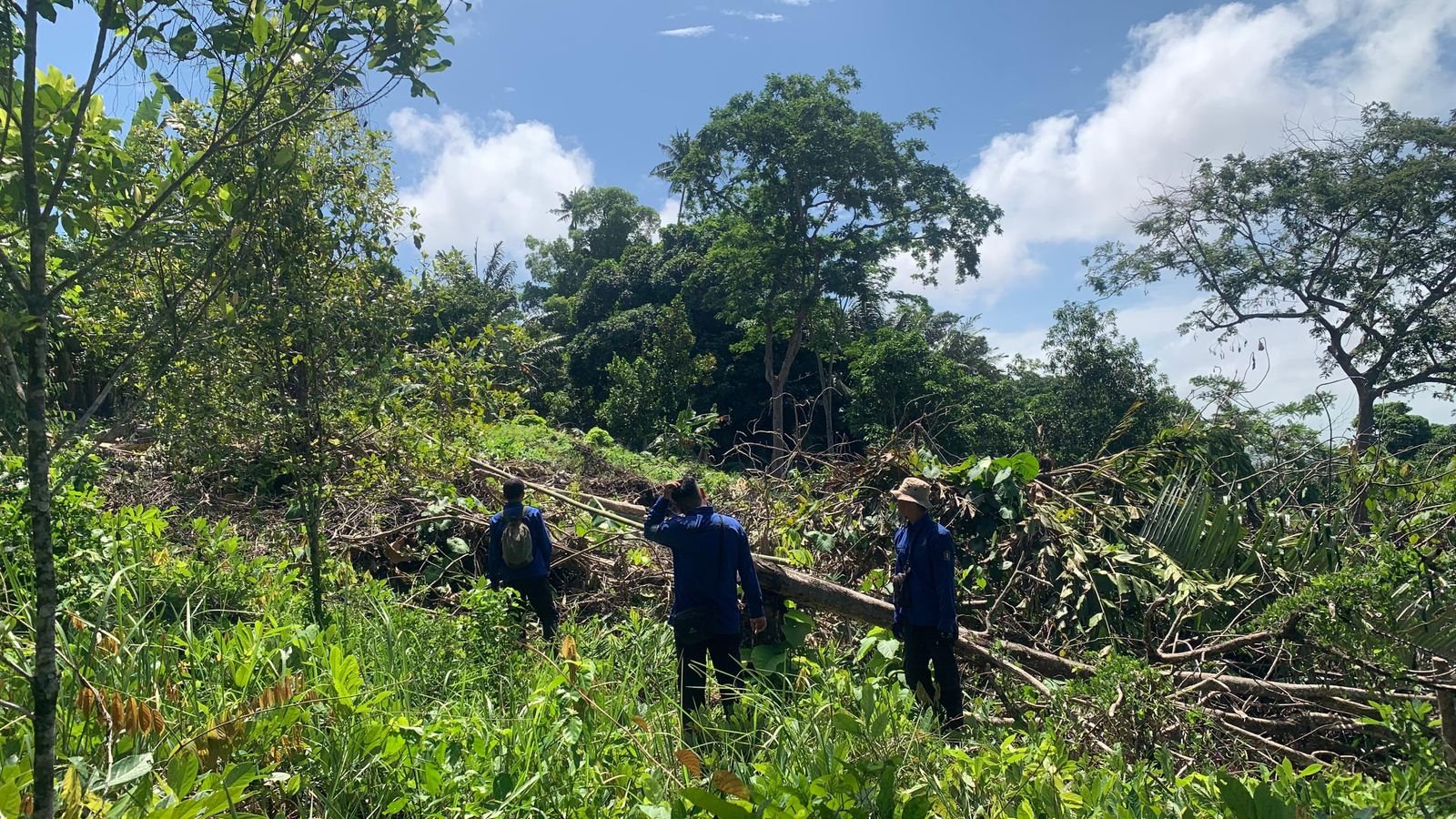 Setelah koordinasi tim melanjutkan patroli di kawasan HL Gunung Pemangkat,di lokasi tim tidak menemukan dugaan lokasi kegiatan ilegal logging maupun penebangan liar hanya saja menemukan lahan sudah dibersihkan disekitar kebun warga.